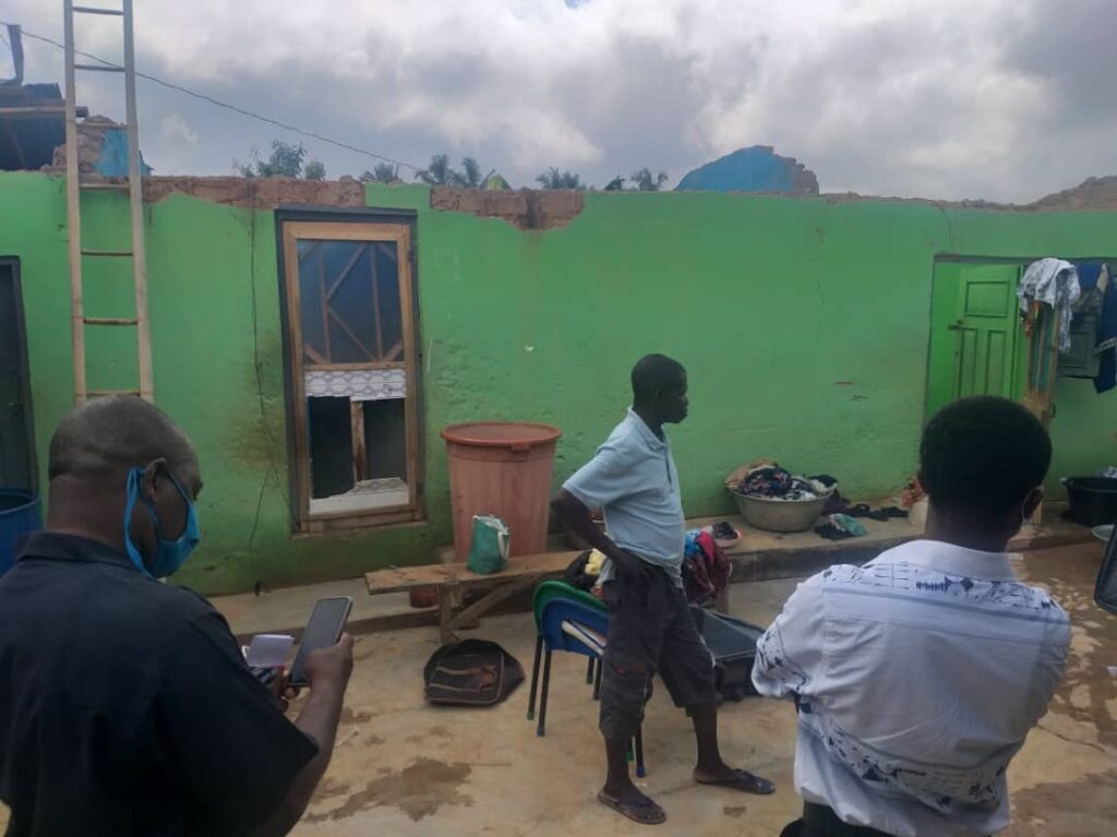 The DCE and his team of some Assembly staff and NADMO visited some houses at Assin Achiano to monitor and assess the extent of damage caused by a heavy storm which resulted in people losing thousands of properties. He pledged the assembly’s support and also going to liaise with NABMO to support the affected persons at this critical moment in their life.