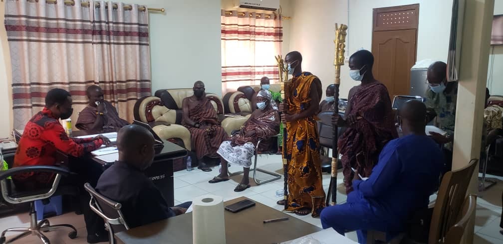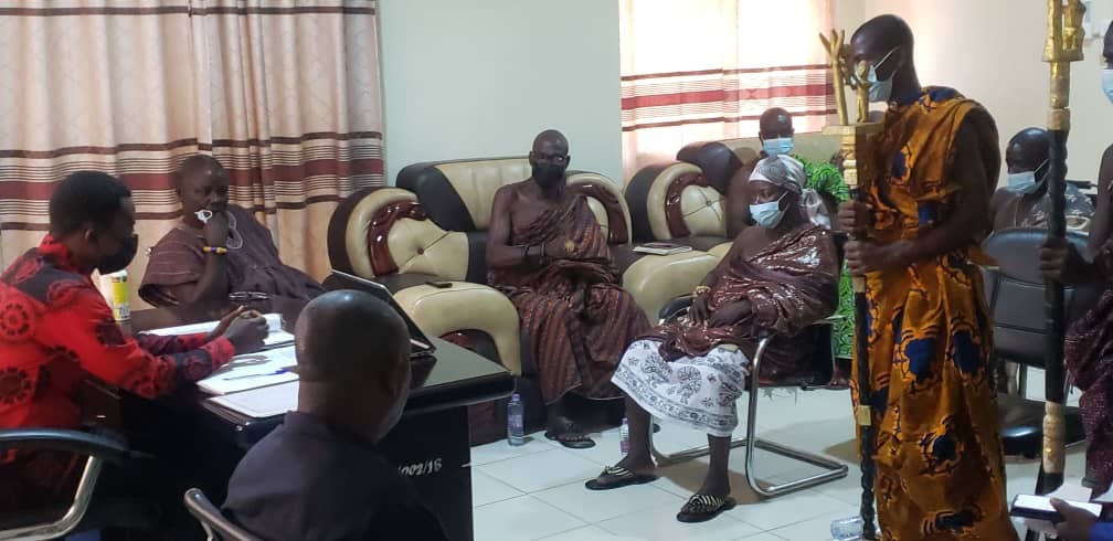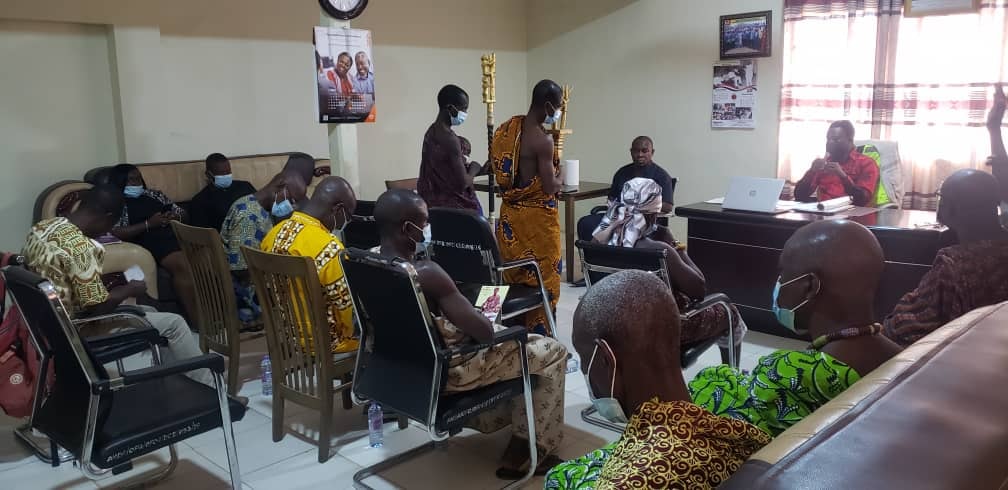 The Nananom from Suaduman and Basofiman paid a visit to the office of the DCE to congratulate him and interact with him. Nananom led by Nana Aboagye Panin (l) Ahenemahene of Apemanim Traditional area and Odikro of Bediadua was full of praise to the DCE and the government for some infrastructure developments ongoing in the area ie road reshaping, CHPs compound, police station among others. They wished him well and appealed for more of such developmental projects in the area.