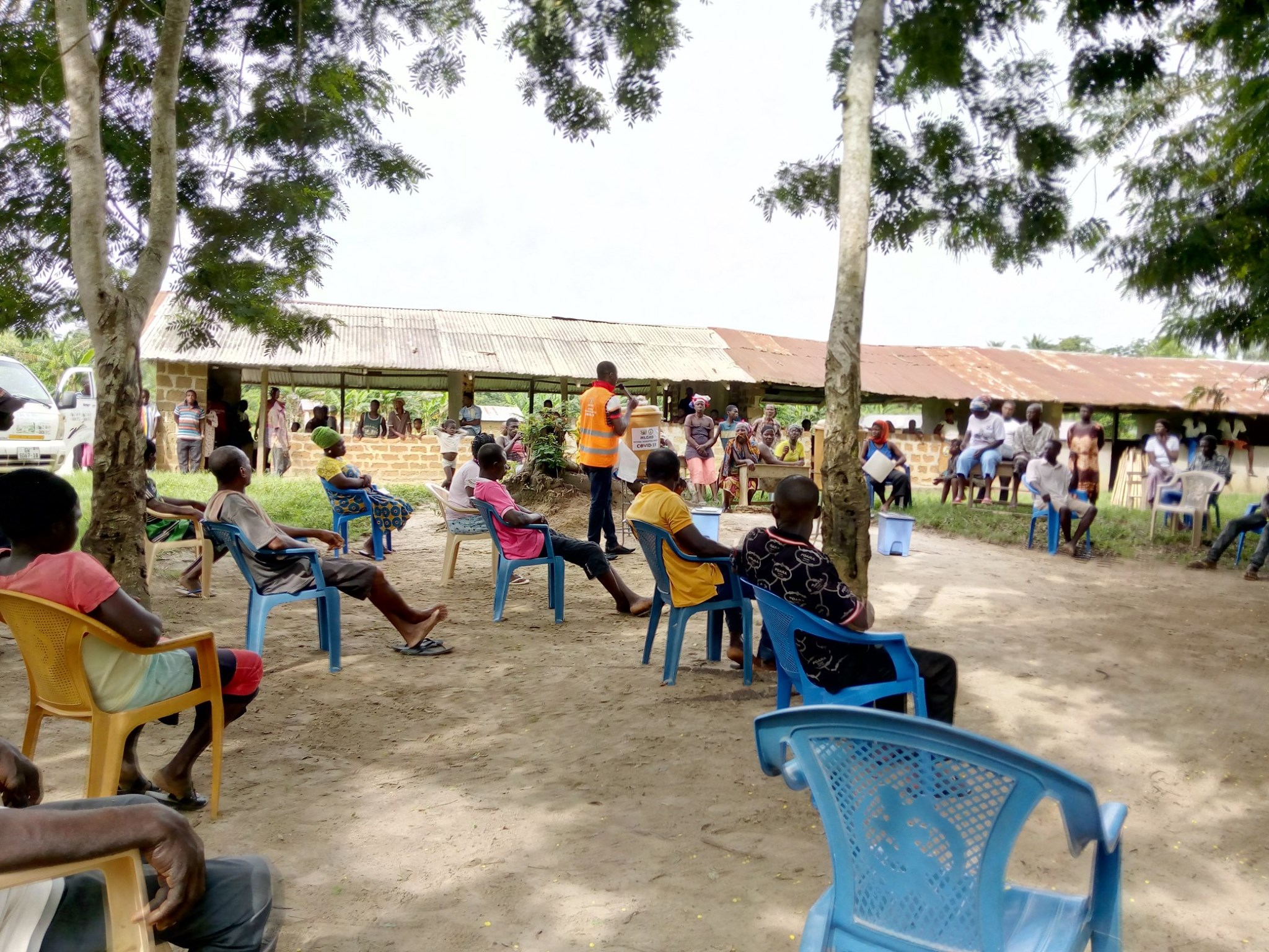 As part of measures to reduce the spread of COVID-19 in the Assin North District, the District Chief Executive of the district, Hon. Charles Ohene Andoh, together with the Member of Parliament for Assin North Constituency, Hon. Abena Durowaa Mensah, and some officers of the Assin North District Assembly toured some comminities in the district to distribute veronica buckets and engage community folks on covid-19 education in various communities in the district.